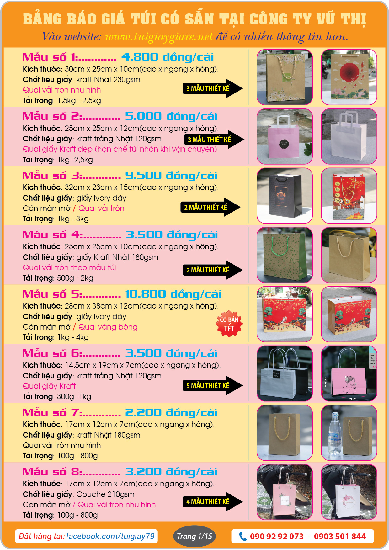 DƯỚI ĐÂY LÀ BẢNG BÁO GIÁ TÚI GIẤY – HỘP GIẤY CÓ SẴN CỦA SHOP TÚI GIẤY VŨ THỊ TẠI THỜI ĐIỂM THÁNG 04/2021