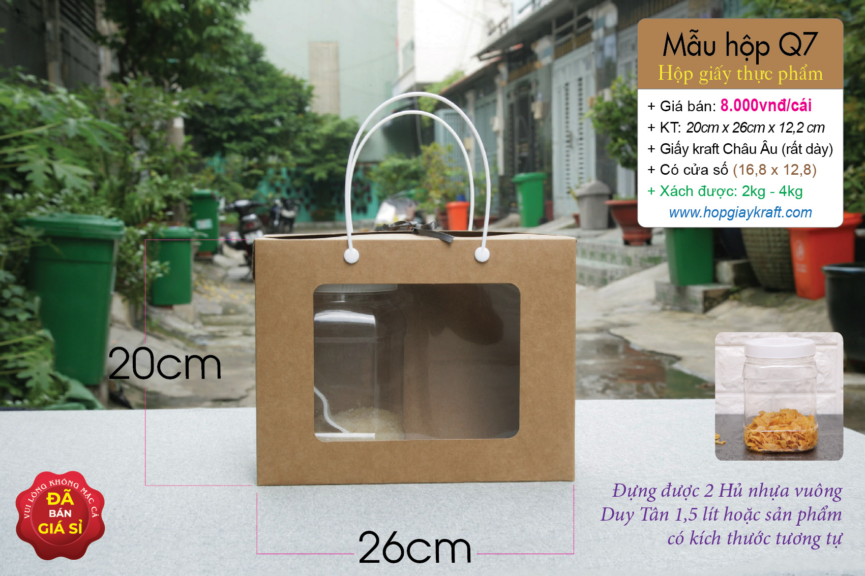 Hộp giấy kraft chuyên dùng đựng thực phẩm – khô gà, khô heo, hạt điều, đậu phộng, đồ ăn vặt – cặp hủ nhựa 500ml – 800ml hoặc 500g – 1kg có quai xách