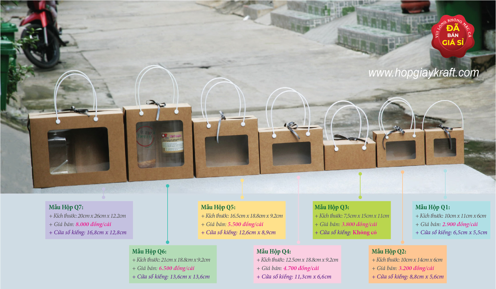 BỘ 8 HỘP GIẤY KRAFT CÓ QUAI XÁCH – (Bộ hộp Q) – Đựng thực phẩm