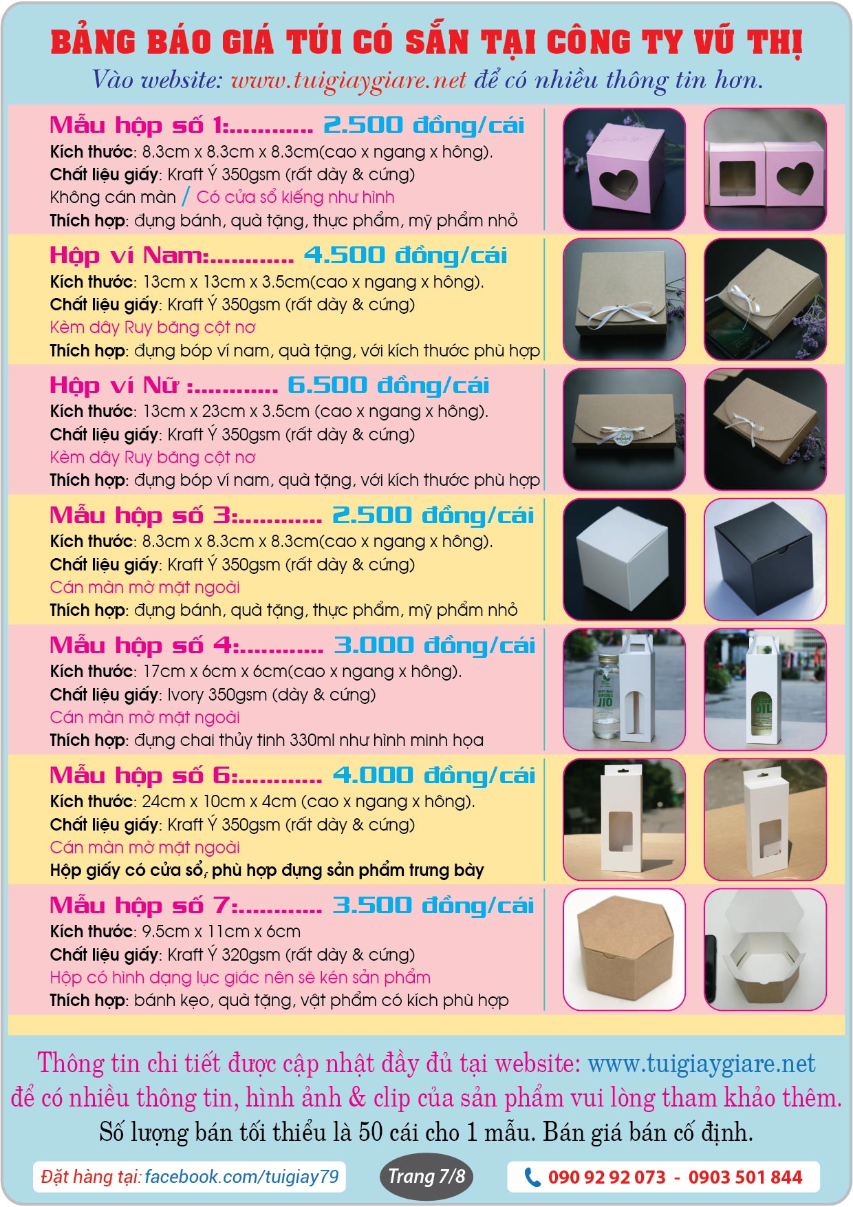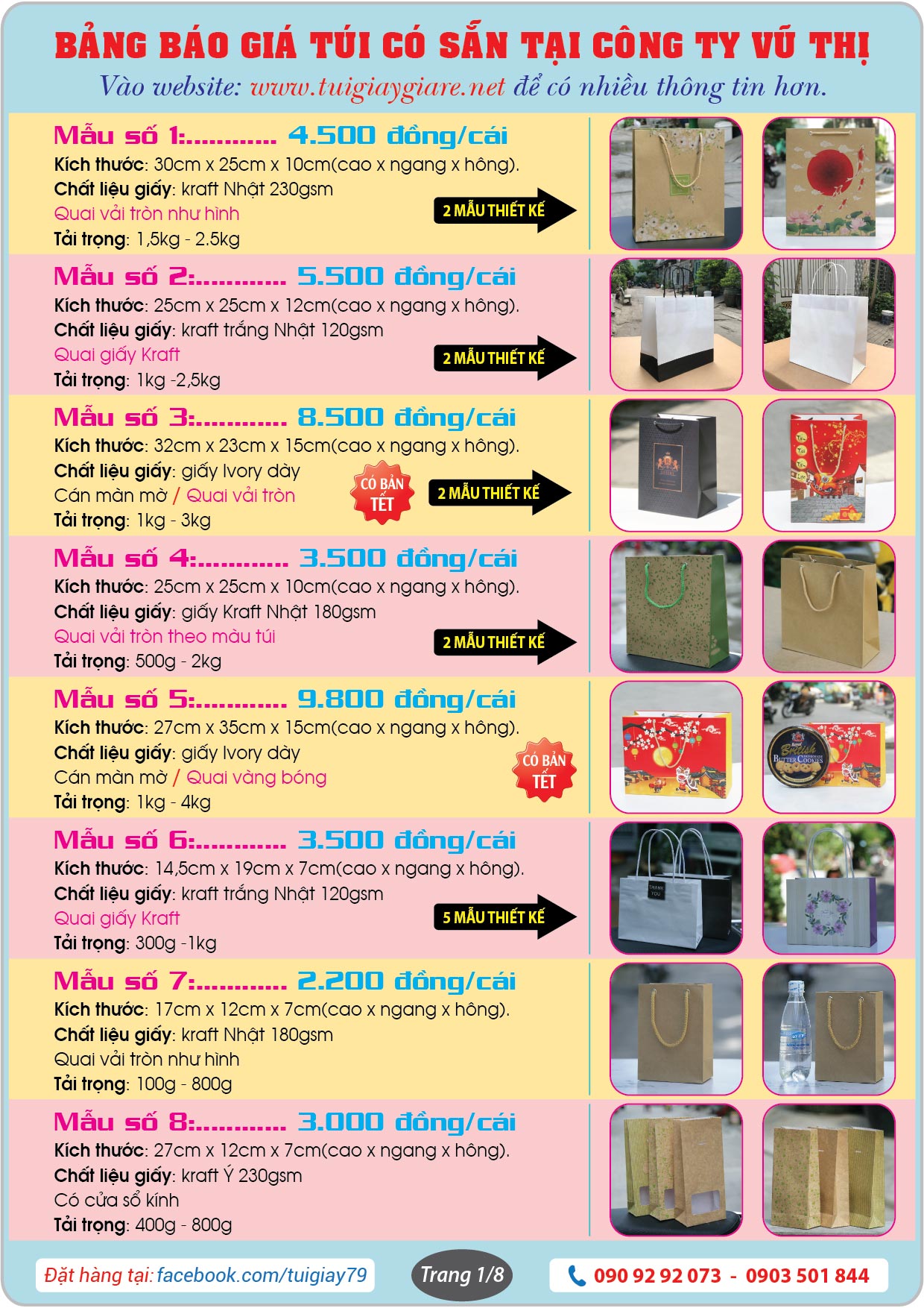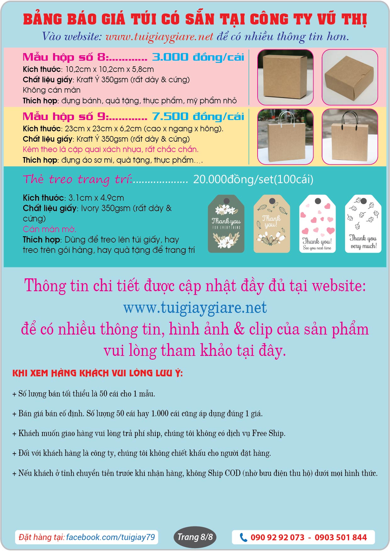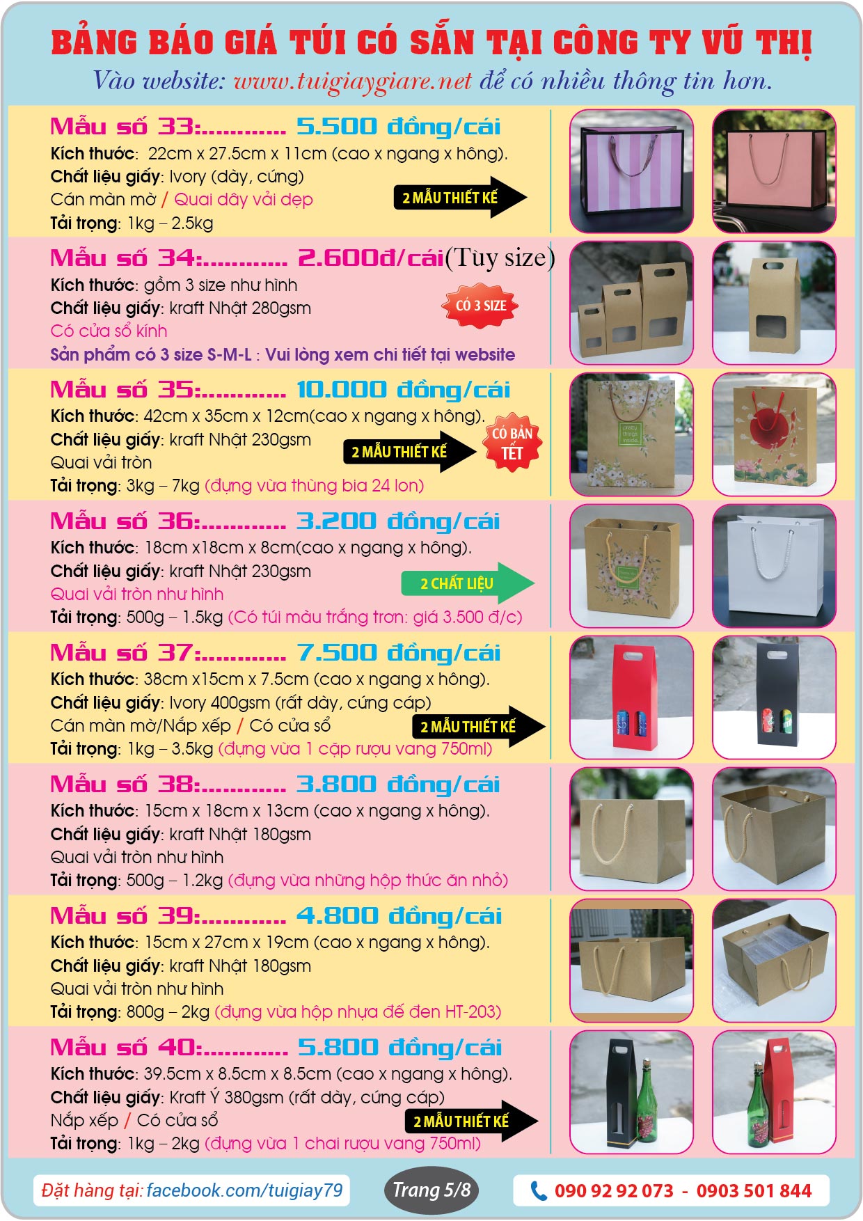 + Công ty in bao bì Vũ Thị là chủ sở hữu và trực tiếp kinh doanh mặt hàng túi giấy làm sẵn trên mạng online. Bao gồm website: https://tuigiay79.com và trang Facebook: https://www.facebook.com/tuigiay79
