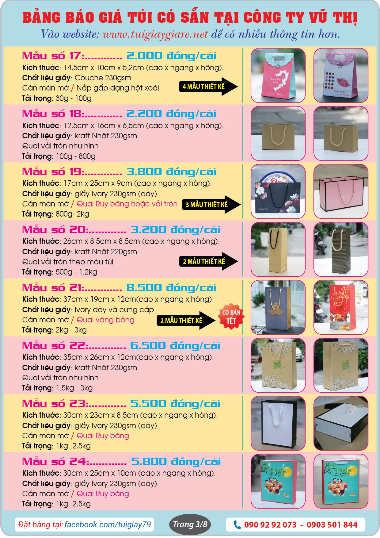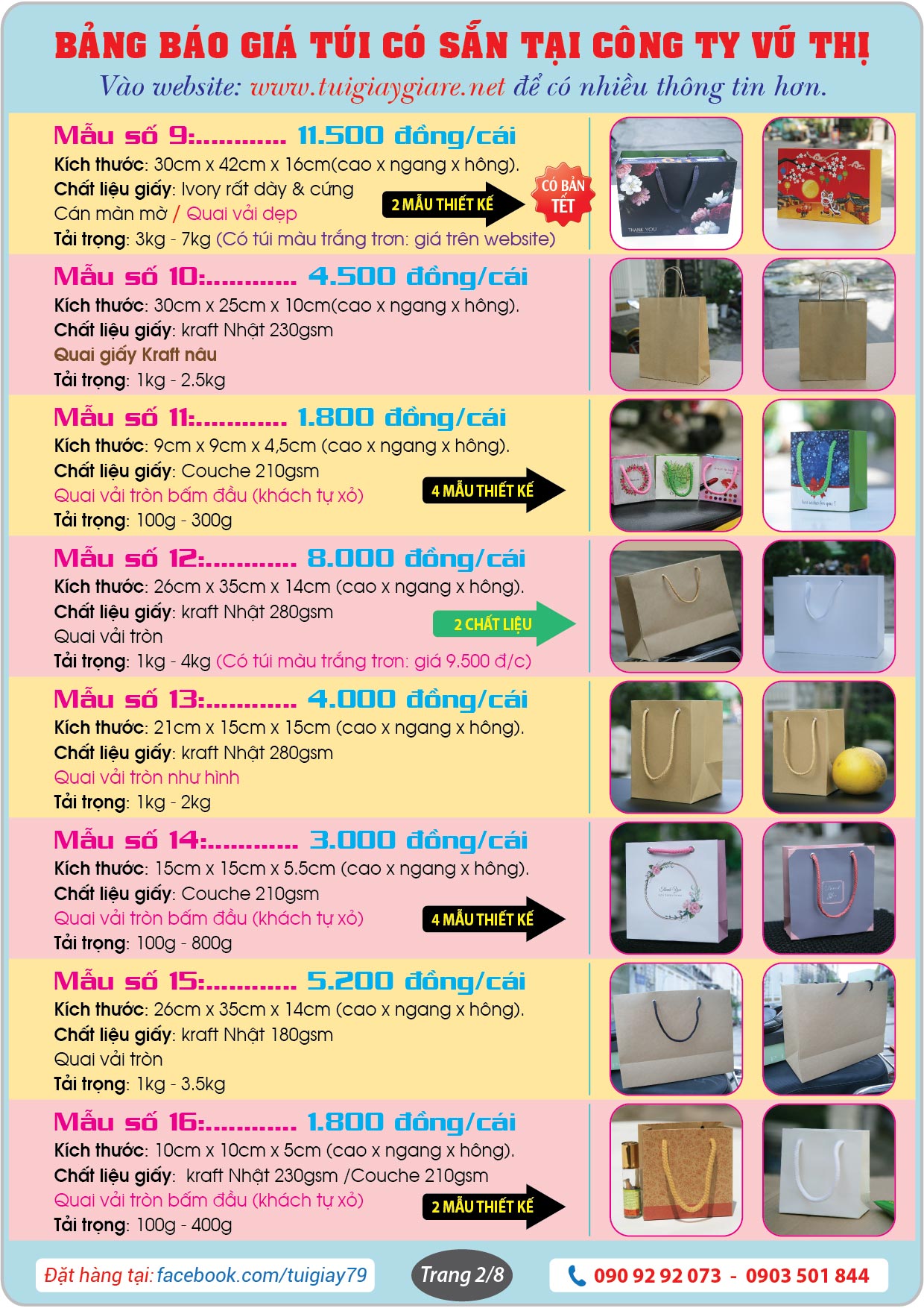 + Công ty in bao bì Vũ Thị là chủ sở hữu và trực tiếp kinh doanh mặt hàng túi giấy làm sẵn trên mạng online. Bao gồm website: https://tuigiay79.com và trang Facebook: https://www.facebook.com/tuigiay79
