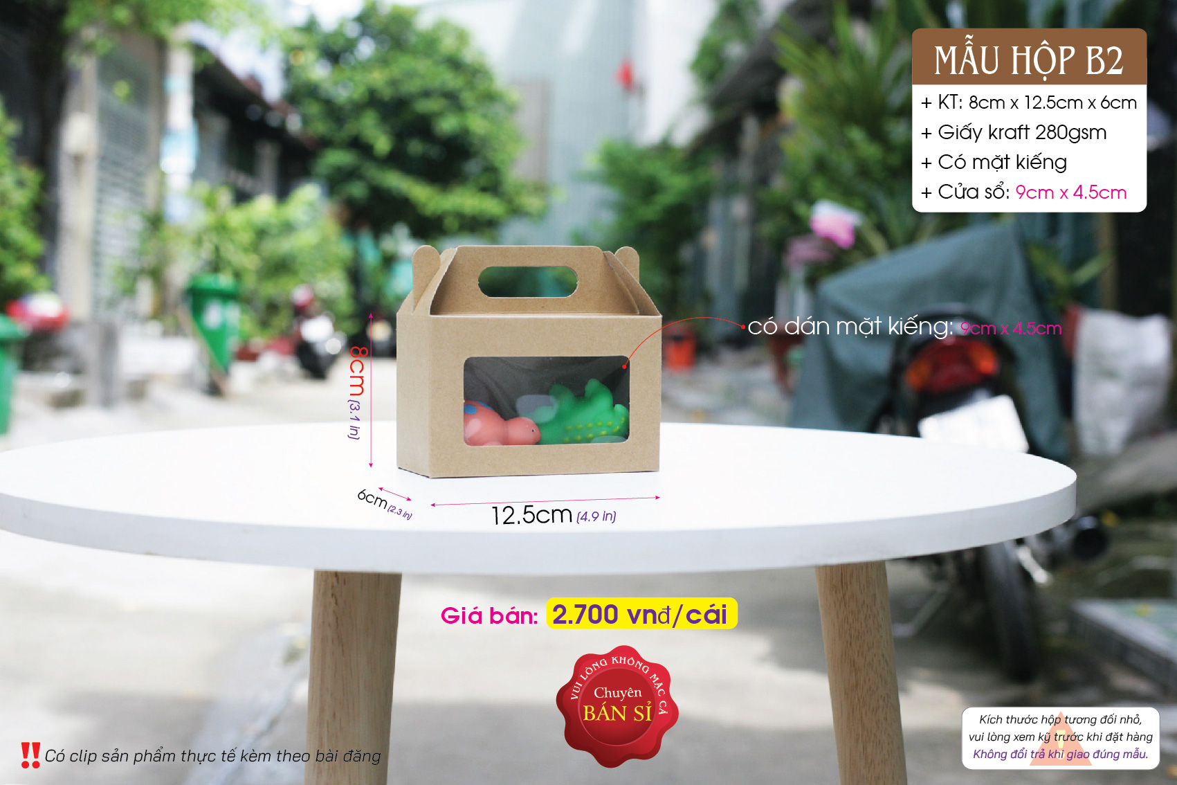 Hộp bánh nhỏ giấy kraft có mặt mica – Brown kraft small cake boxes with window (Bộ hộp B hiện gồm 2 kích thước từ nhỏ đến lớn, từ B2 & B3)