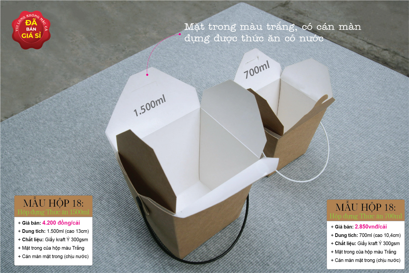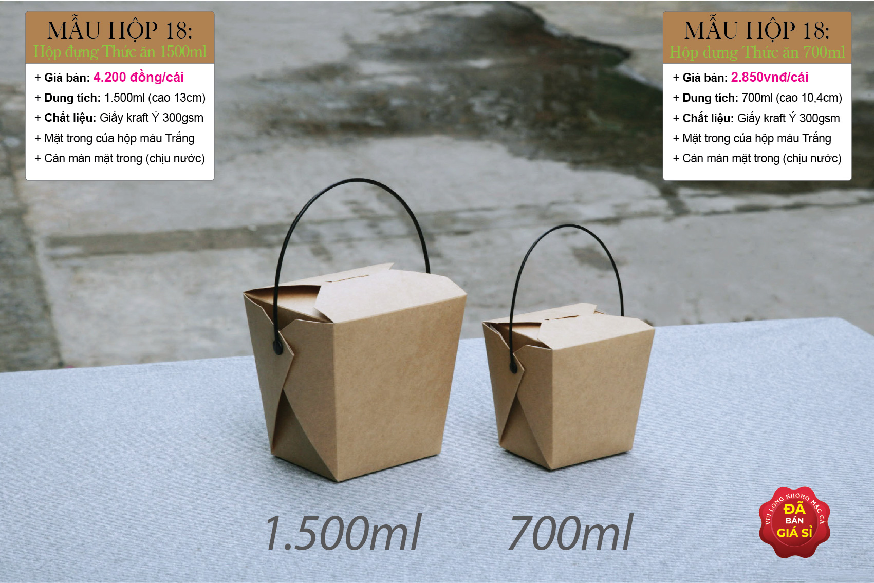 (Hộp số 18 hiện tại gồm 3 kích thước từ nhỏ đến lớn: 700ml , 1.000ml và 1.500ml)
