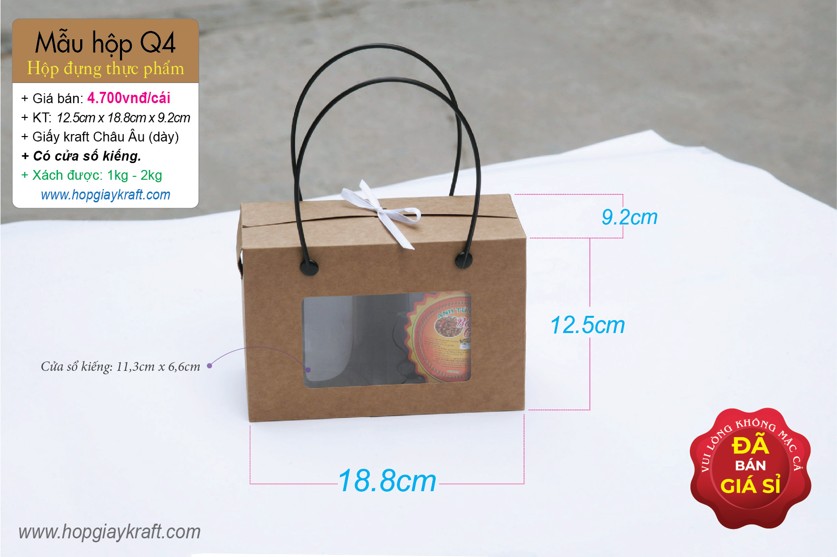 + Quai xách nhựa (rất chắc chắn) – màu quai Trắng hoặc Đen do khách tự chọn