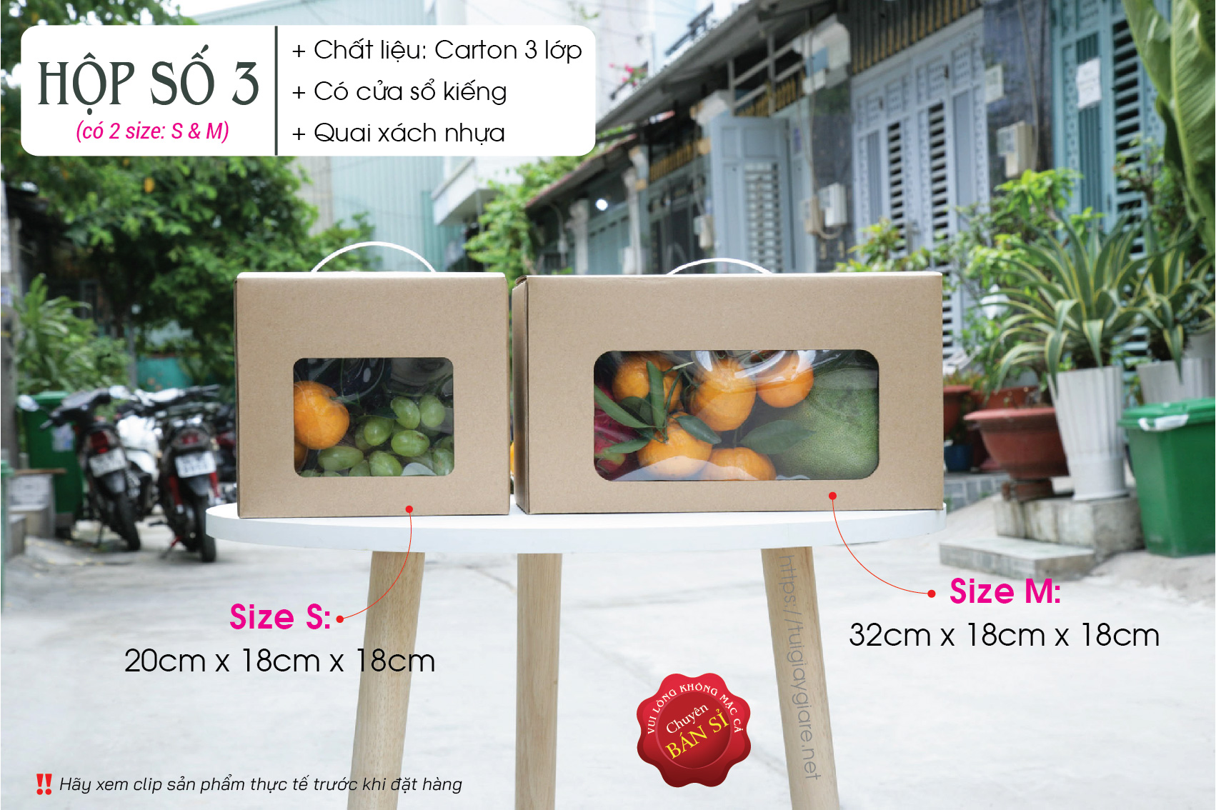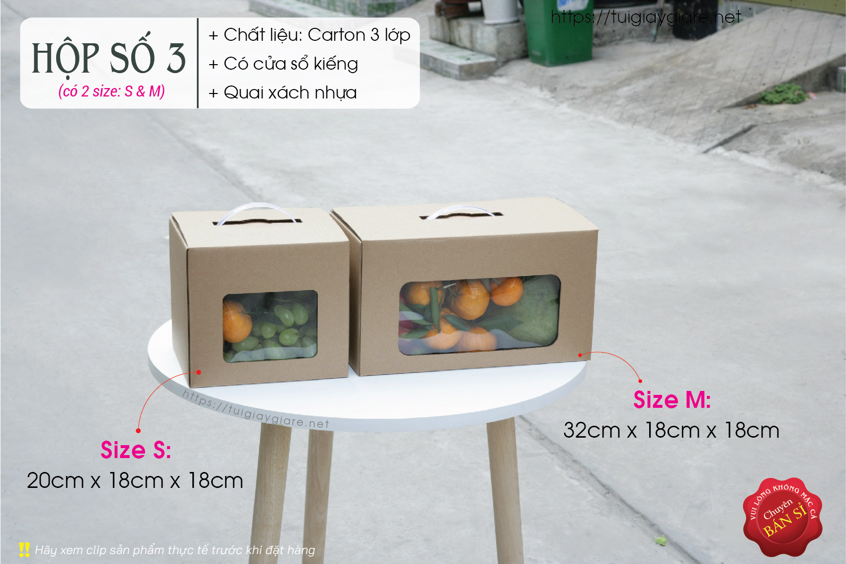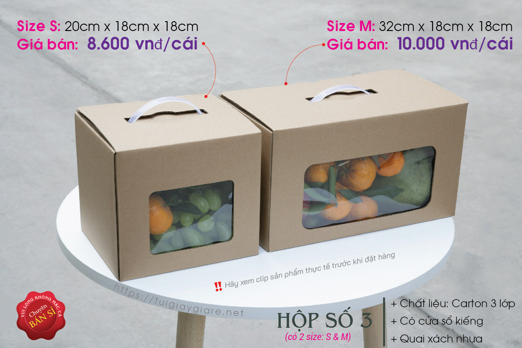 + Size M: 32cm x 18cm x 18cm (cao x ngang x hông) – Cửa sổ mica: 13cm x 16cm – Giá bán: 10.000 đồng/cái