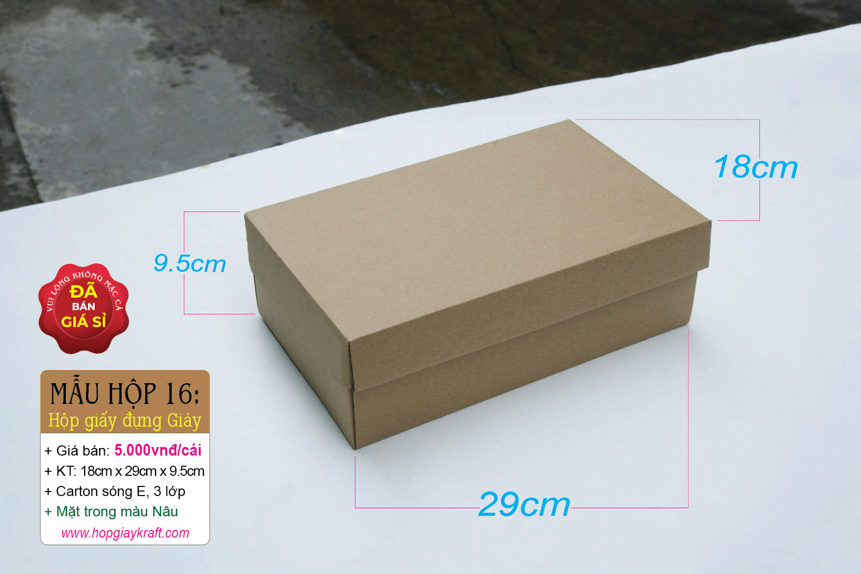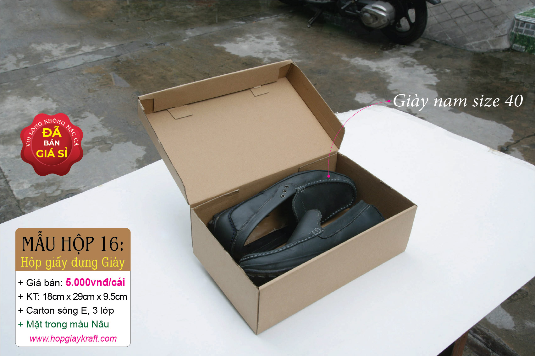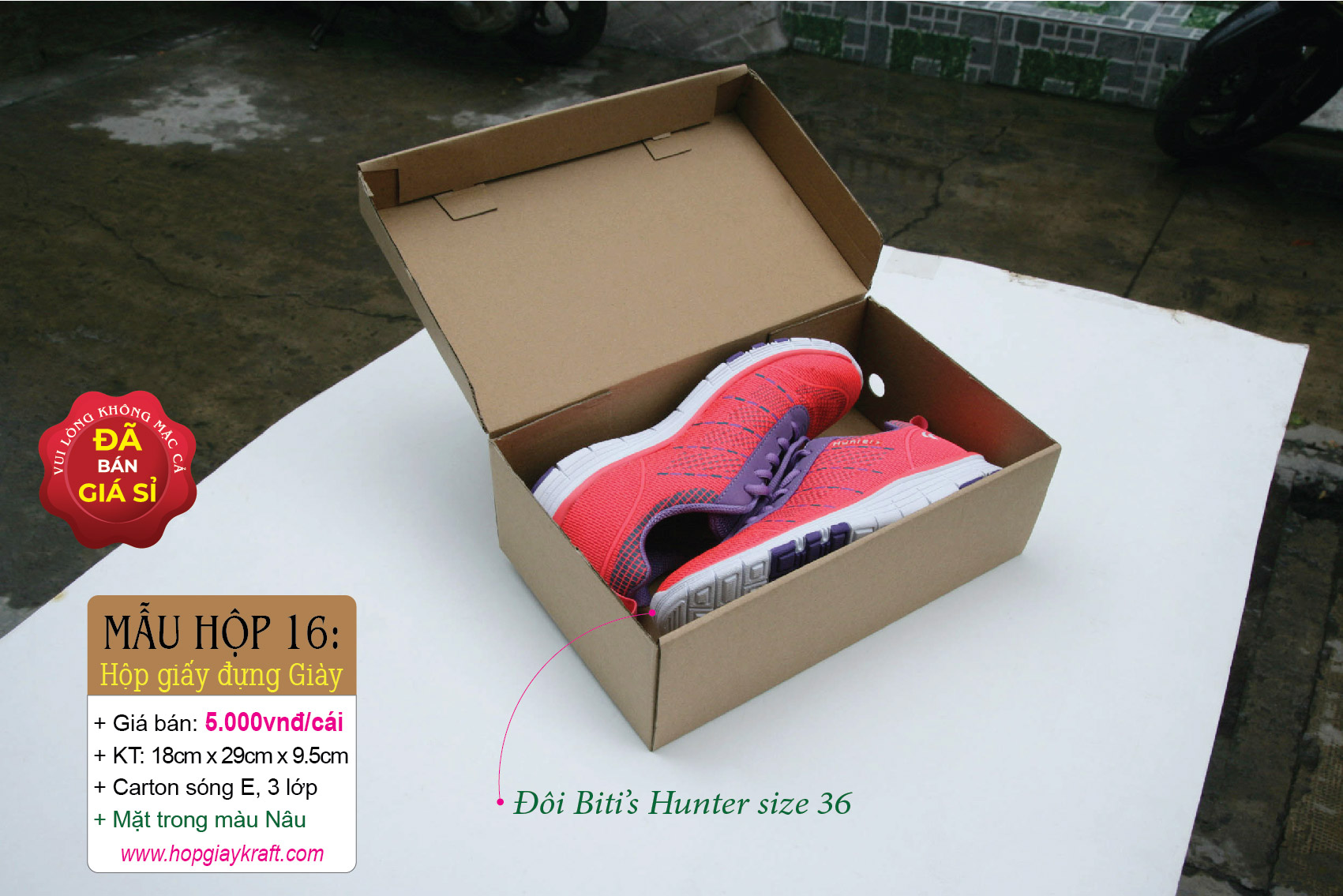 + Để minh chứng cho điều đó, các thông tin về Giá cả, Kích thước, Chất liệu & Hình thực tế đều được chúng tôi công bố rõ ràng trên website để tránh ngộ nhận & nhầm lẫn cho khách hàng. Hộp giấy carton đựng giày