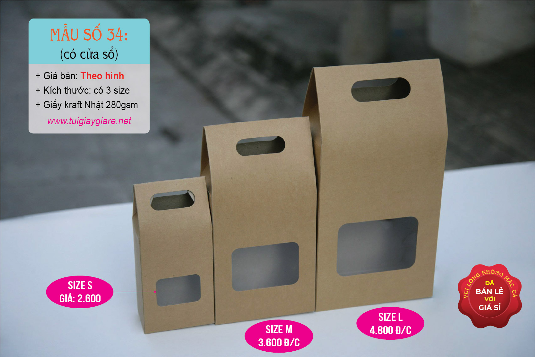 - Riêng Shop Túi giấy Giá rẻ. Cung cấp các loại Túi giấy có sẵn,Túi giấy Kraft cho các shop online, cửa hàng có nhu cầu sử dụng ít.