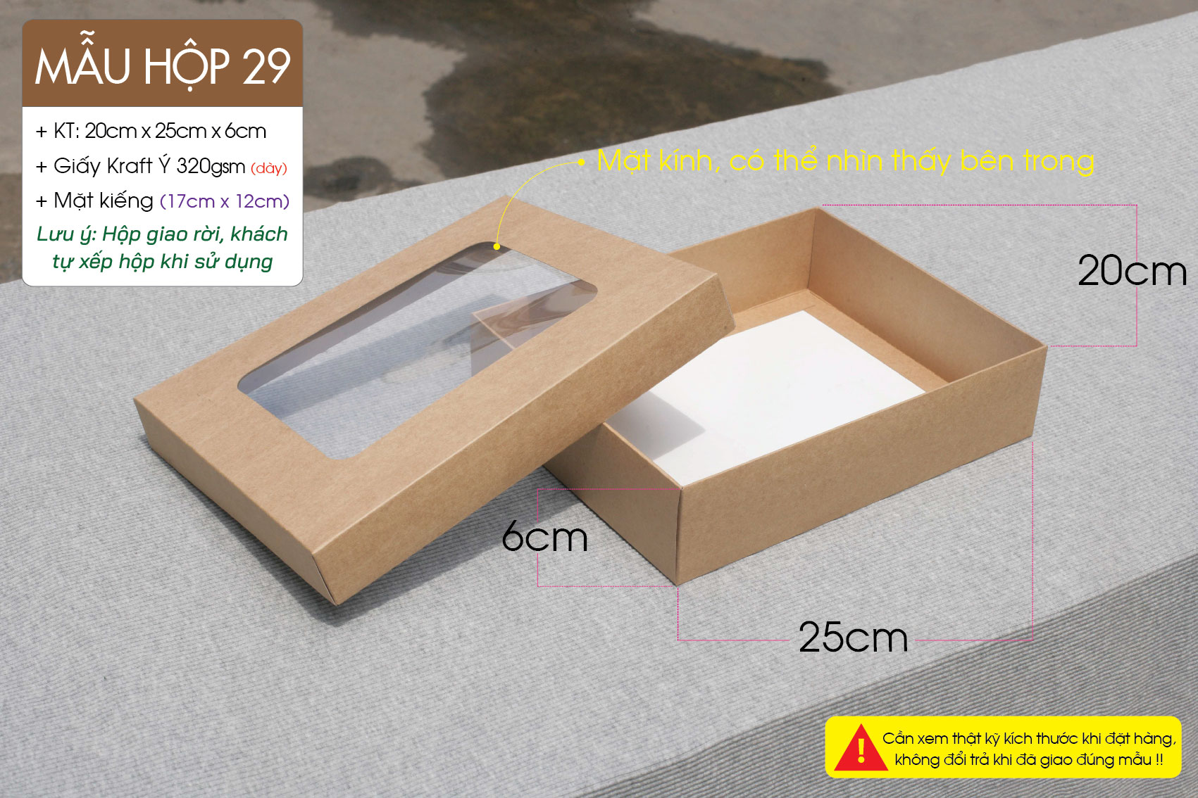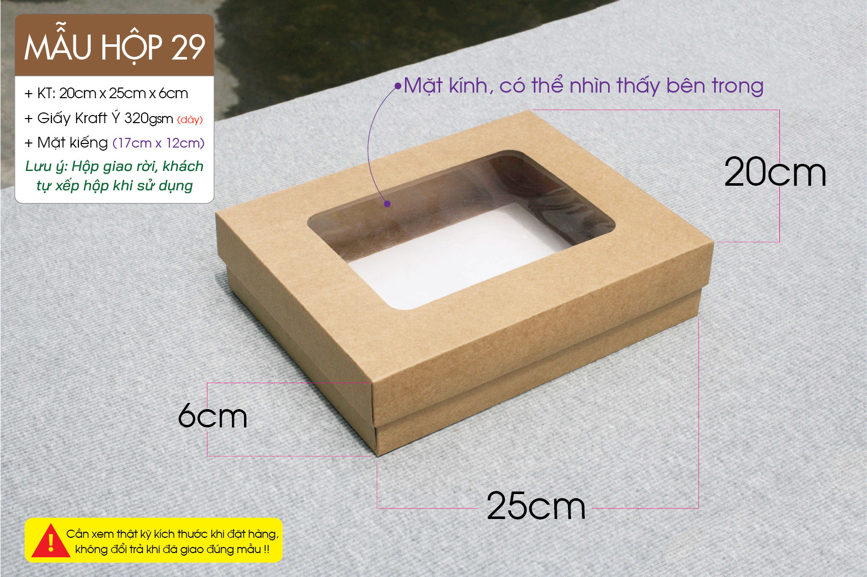 + Nắp hộp có phần cửa sổ kính: 12cm x 17cm, nhìn thấy được sản phẩm bên trong.