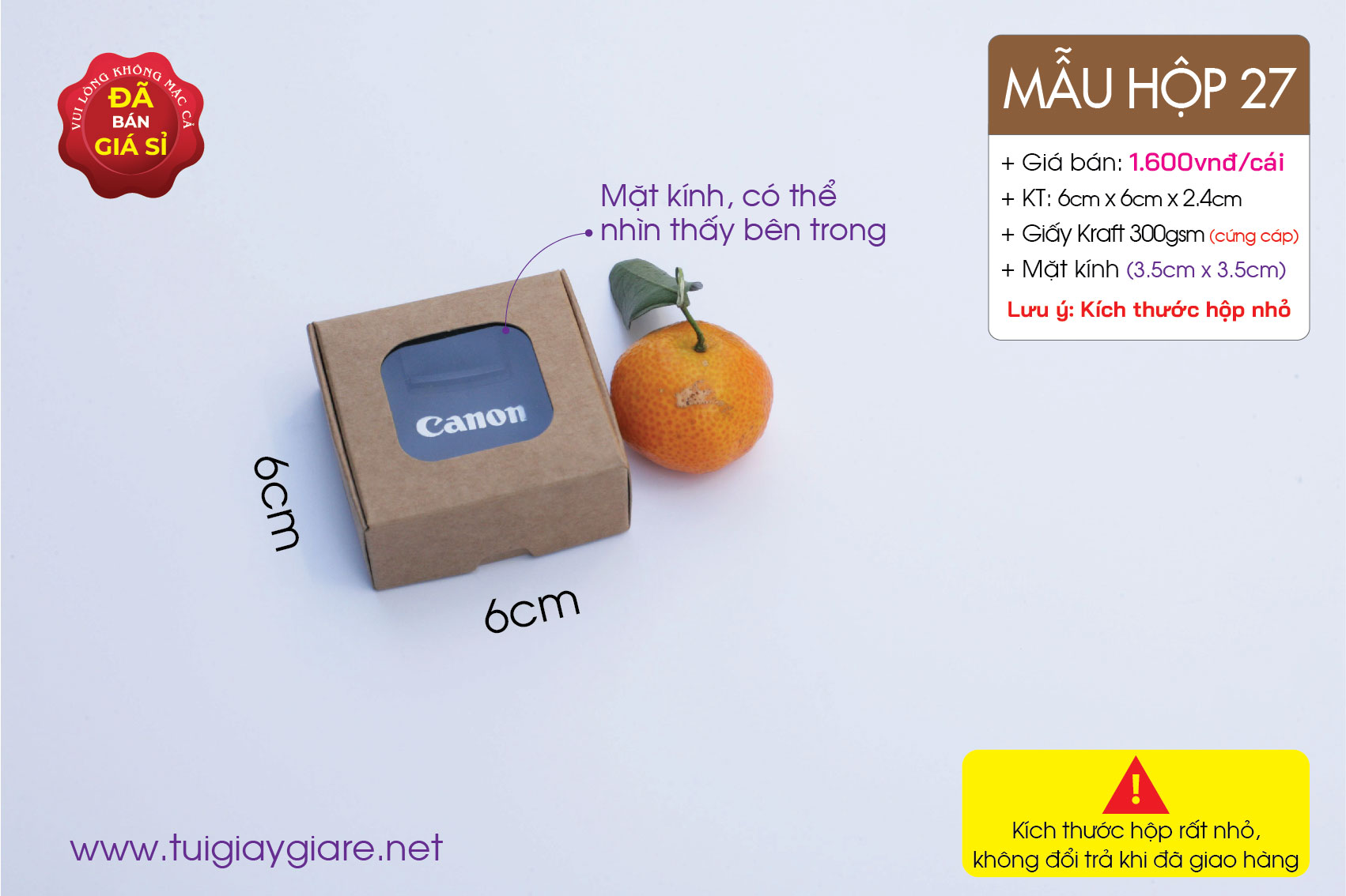 + Có phần cửa sổ kính: 3.5cm x 3.5cm, nhìn thấy được sản phẩm bên trong.