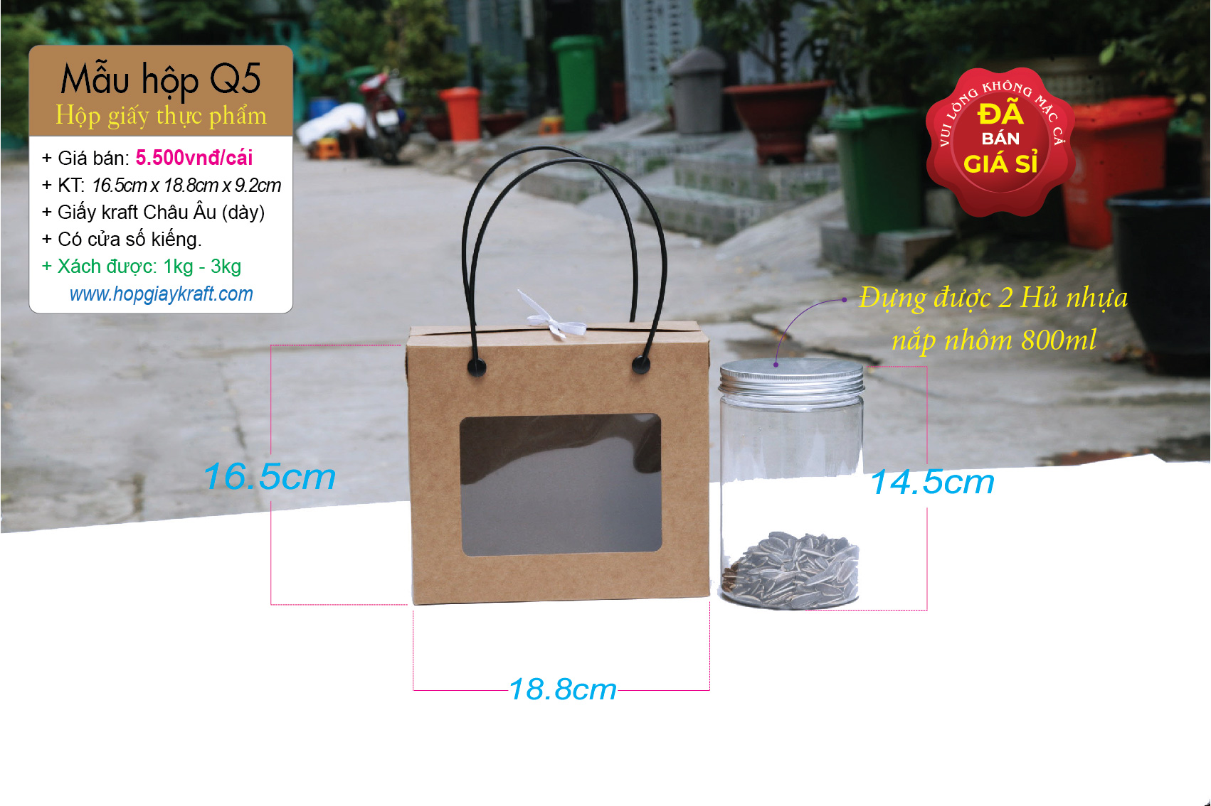 Hộp giấy thực phẩm – đựng khô mực, khô heo, khô gà, hạt điều, đậu phộng, hủ nhựa 800ml hoặc 1kg