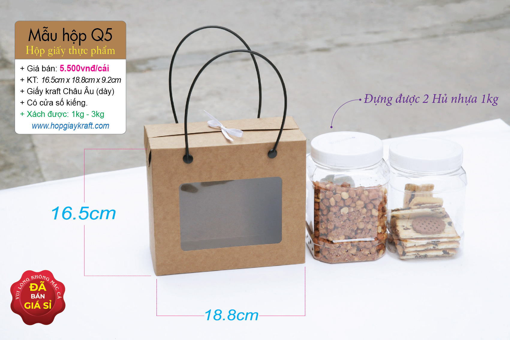 Hộp giấy thực phẩm – đựng khô mực, khô heo, khô gà, hạt điều, đậu phộng, hủ nhựa 800ml hoặc 1kg