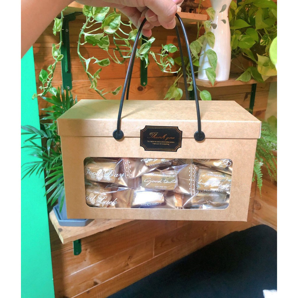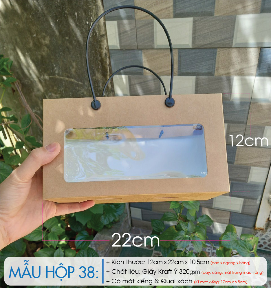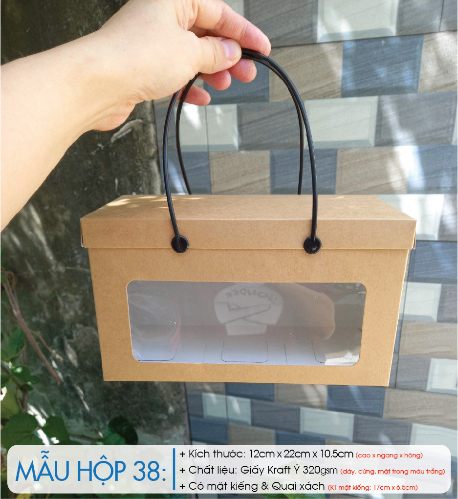 * Mỗi hộp khi giao cho khách hàng bao gồm: nắp hộp, thân hộp, 2 quai nhựa.