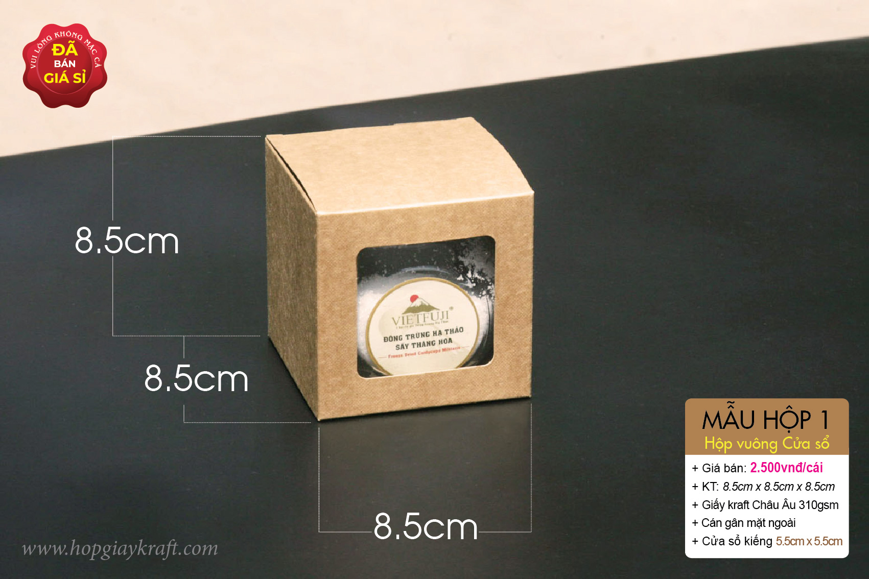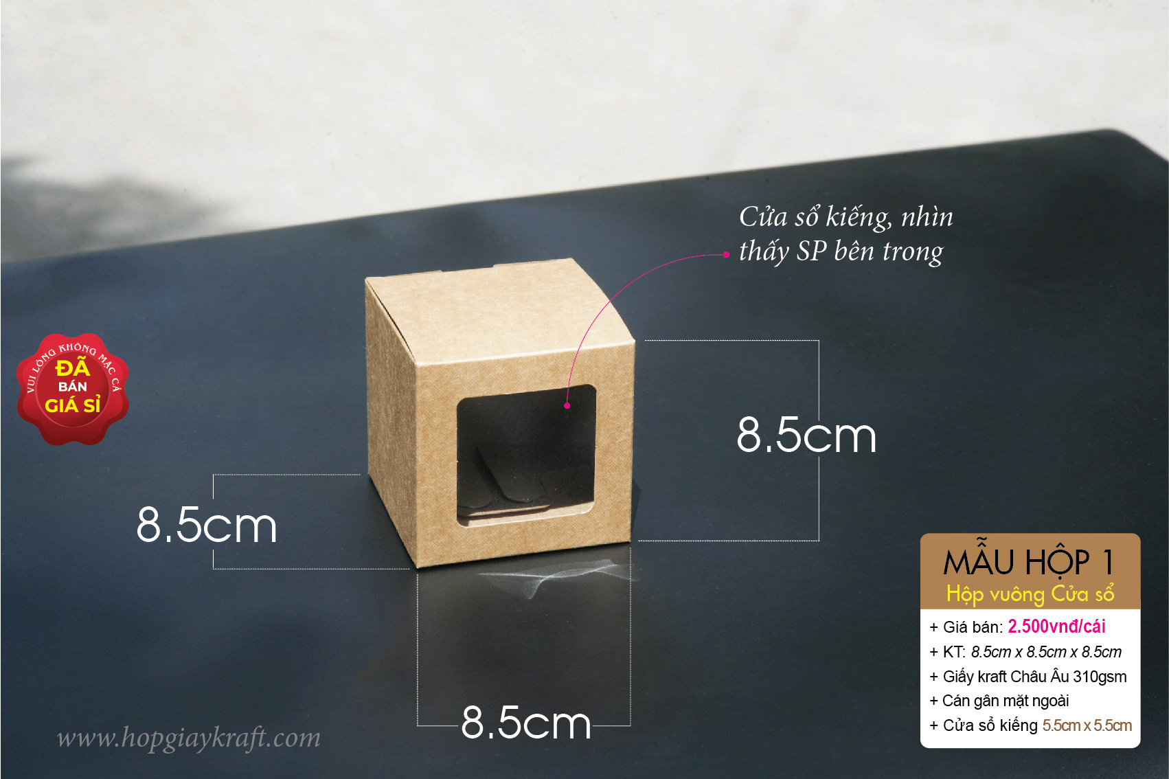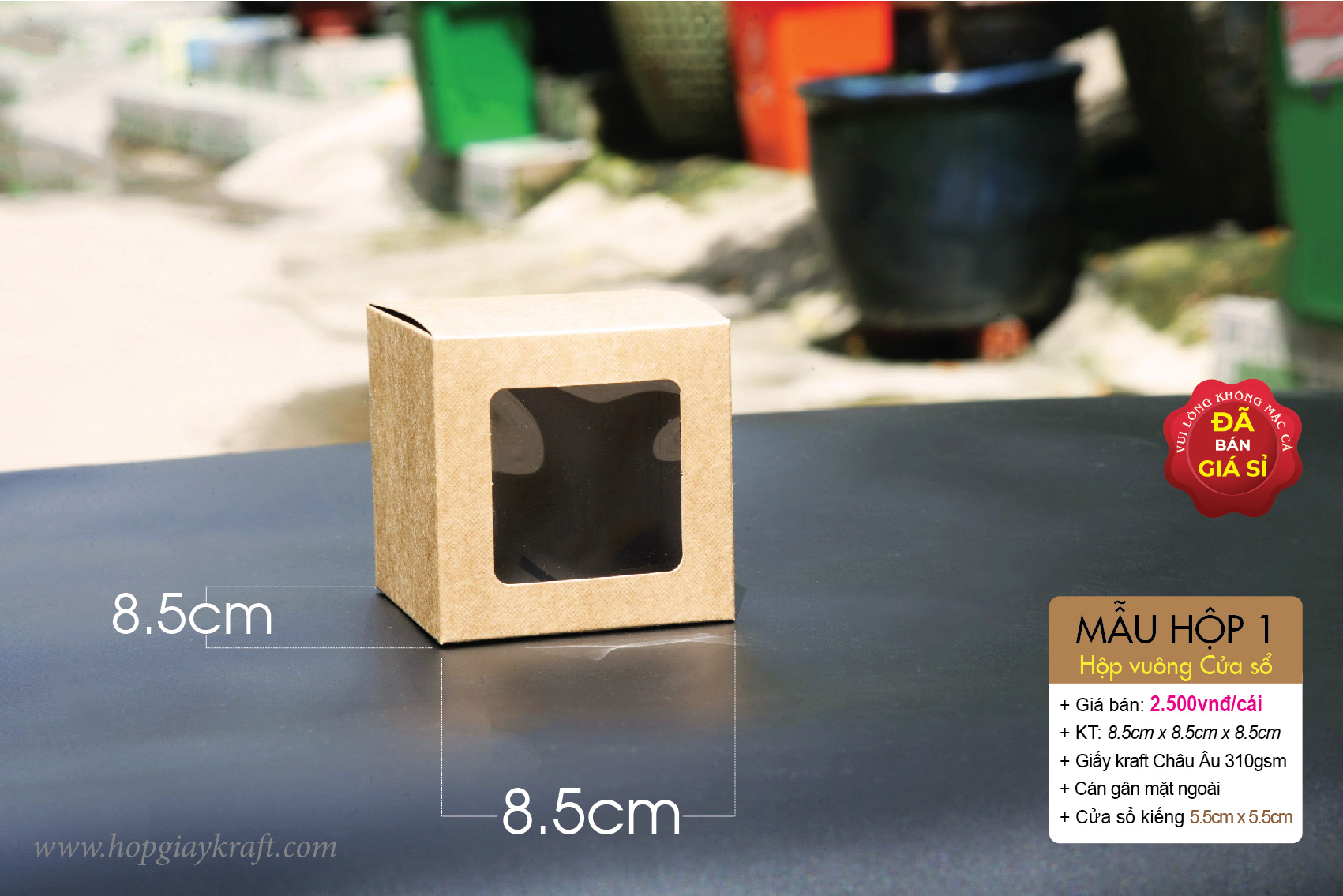 Hộp vuông cửa sổ – Hộp giấy kraft vuông có cửa sổ kiếng (support)