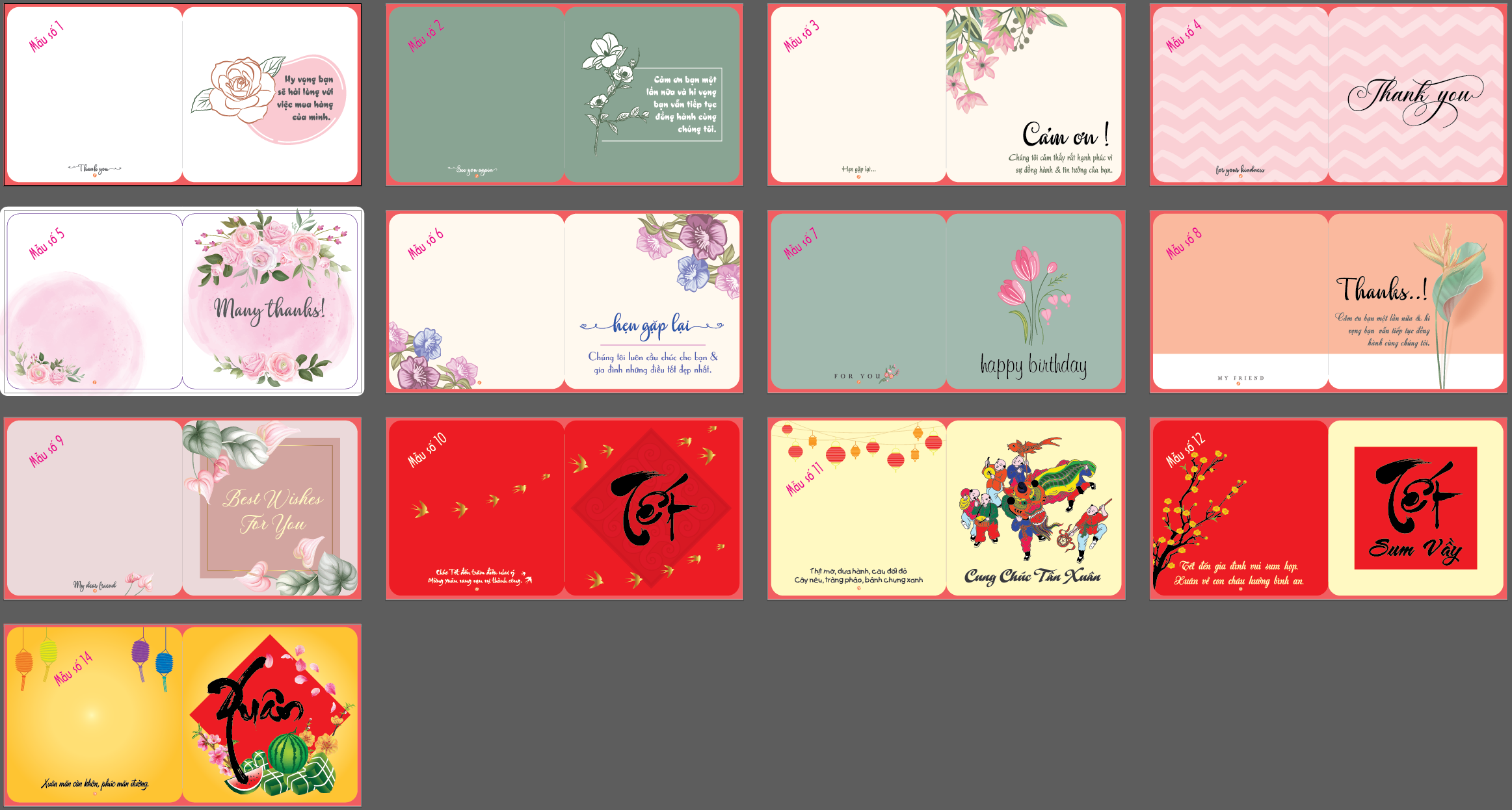 Thiệp mini trang trí – Thiệp giấy mini – Thank you cards – Mini cards – Tết