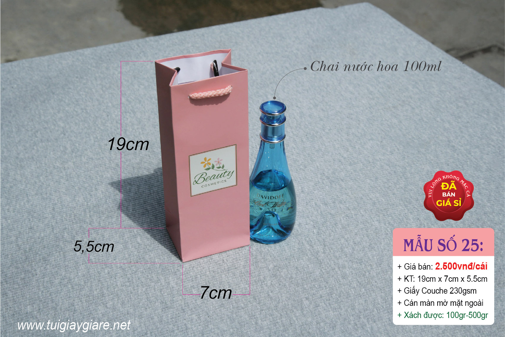 Túi giấy đựng chai Mỹ phẩm, nước hoa, tinh dầu, Mắt kính, Son môi nước, típ sữa rửa mặt …