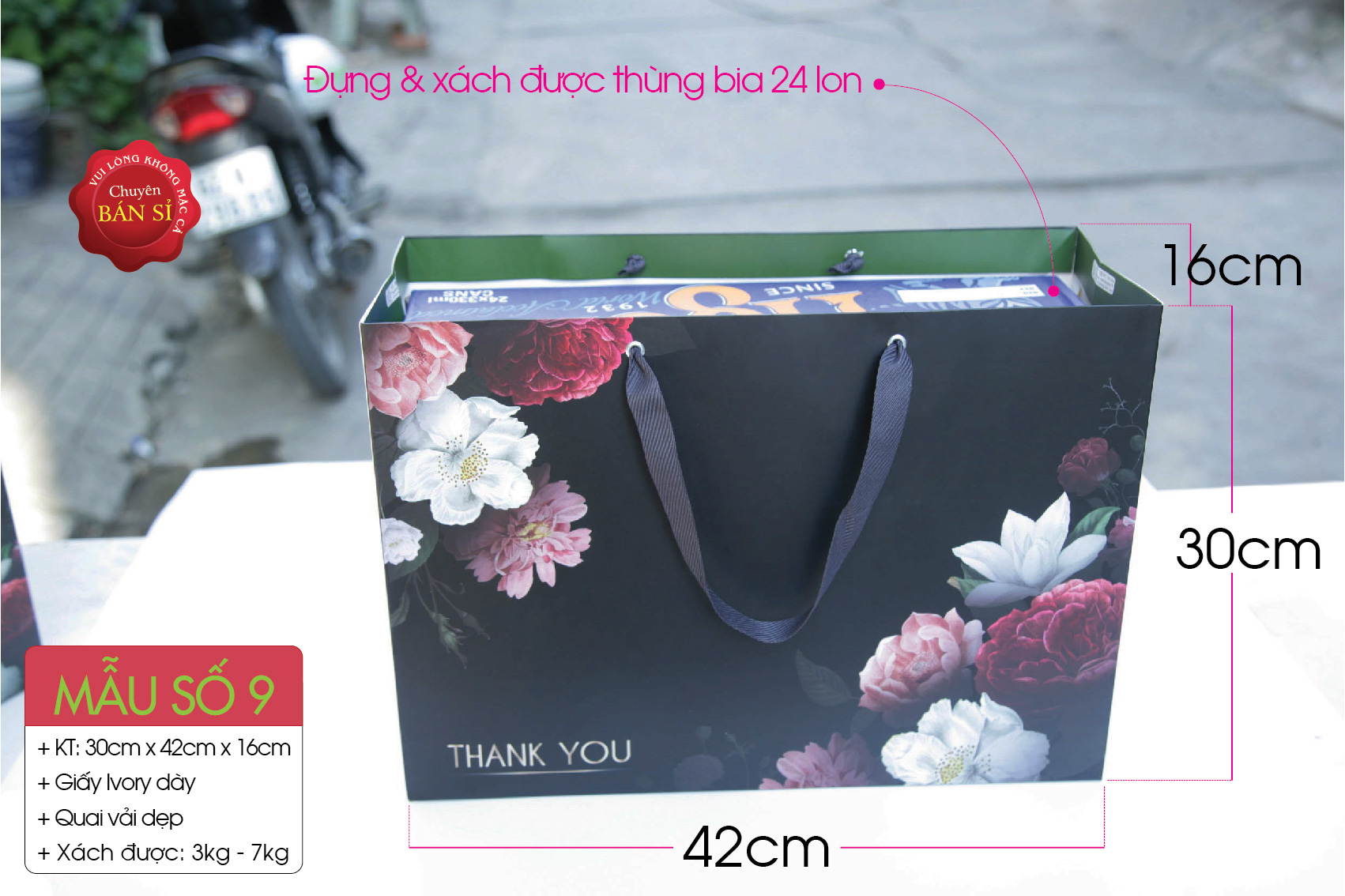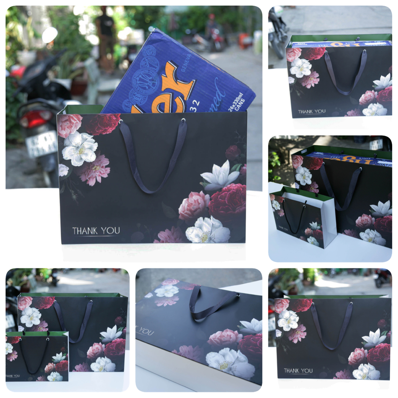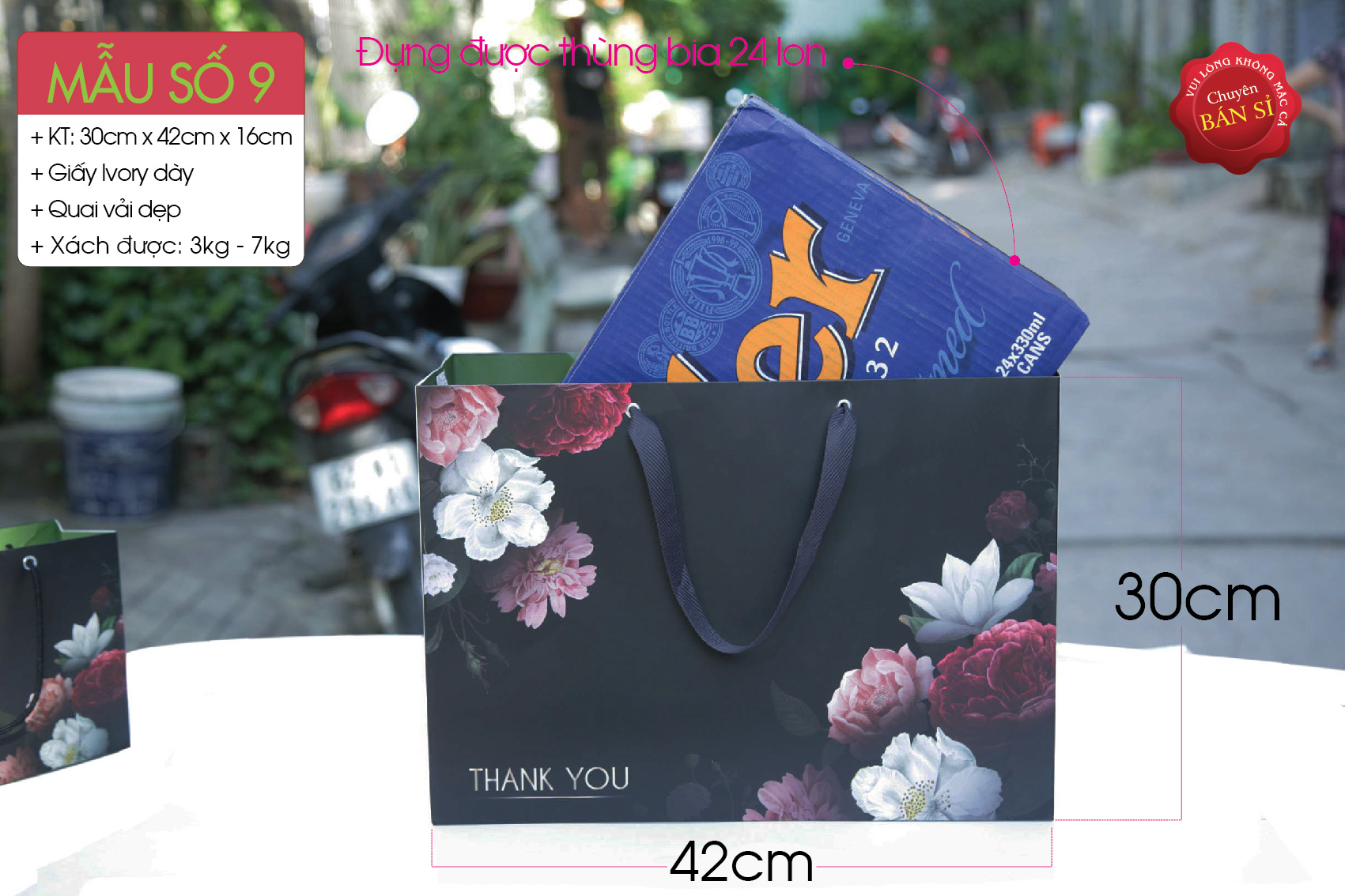 Túi giấy phù hợp nhiều mặt hàng kích thước lớn, chứa vừa thùng bia 24 lon.