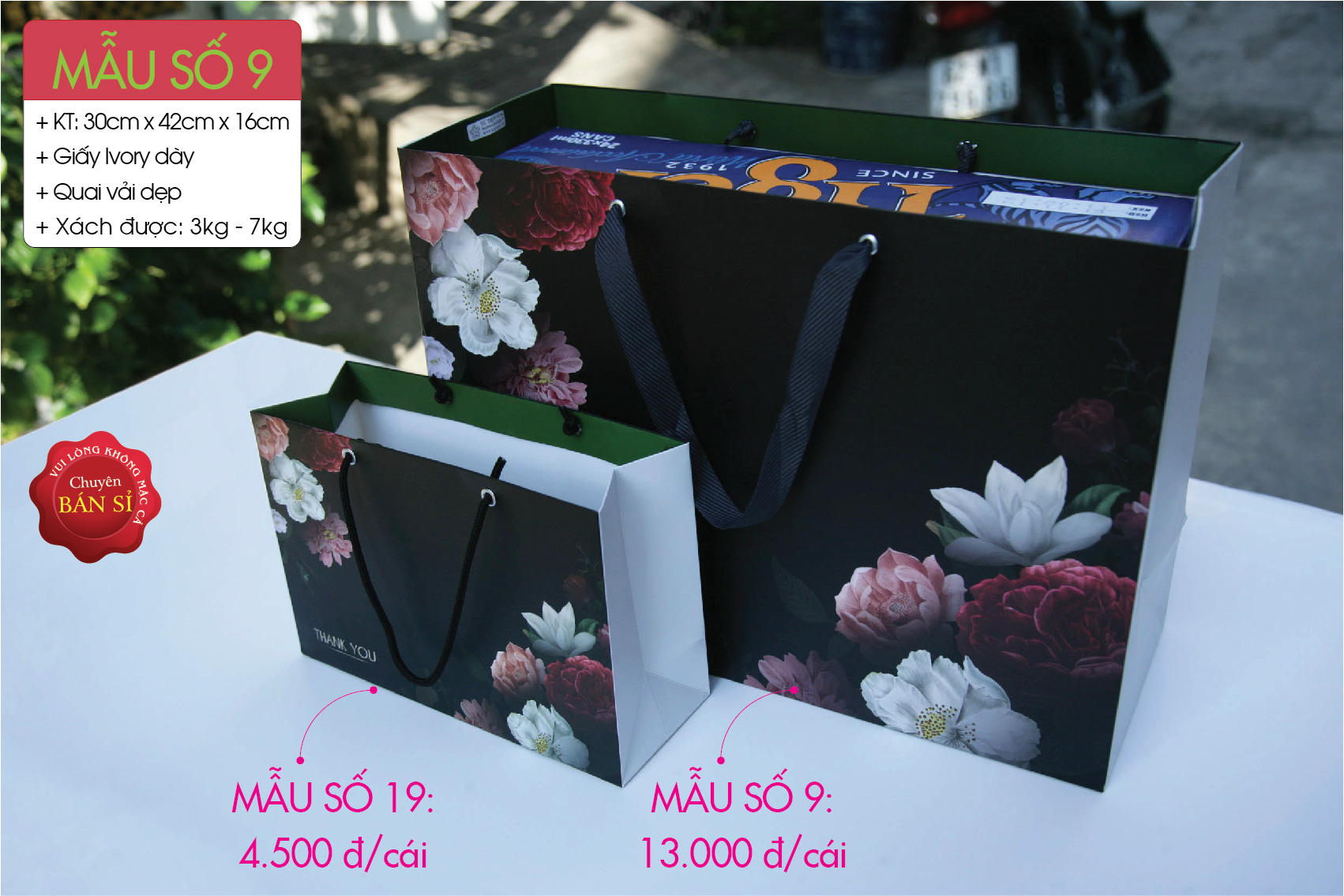 + Giá bán túi giấy trên website là giá bán cố định. Số lượng 50 cái hay 1.000 cái cũng áp dụng đúng 1 giá.