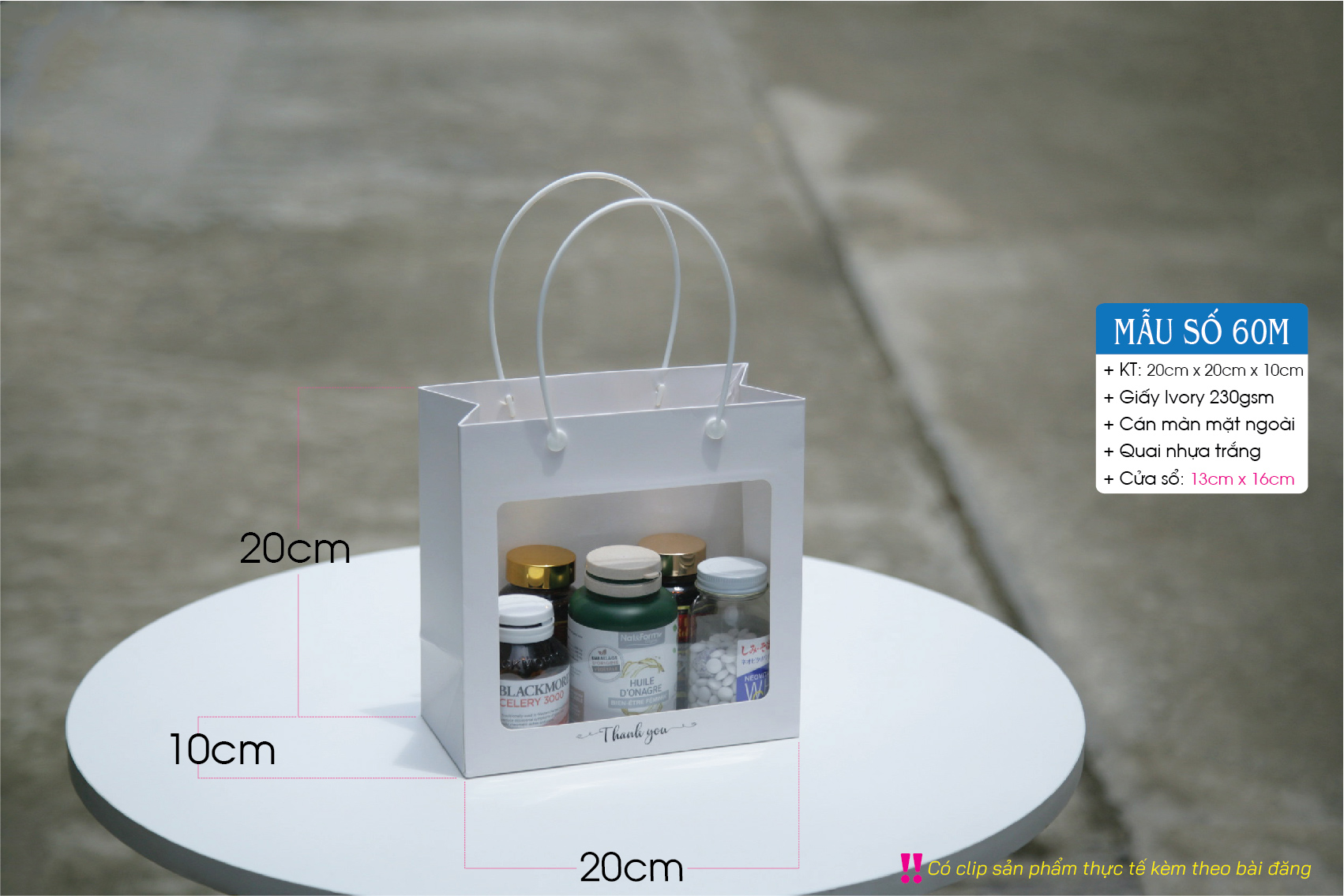 Túi mica trắng – Túi giấy có cửa sổ mica – Gồm 3 size S M L – Paper bag with clear window