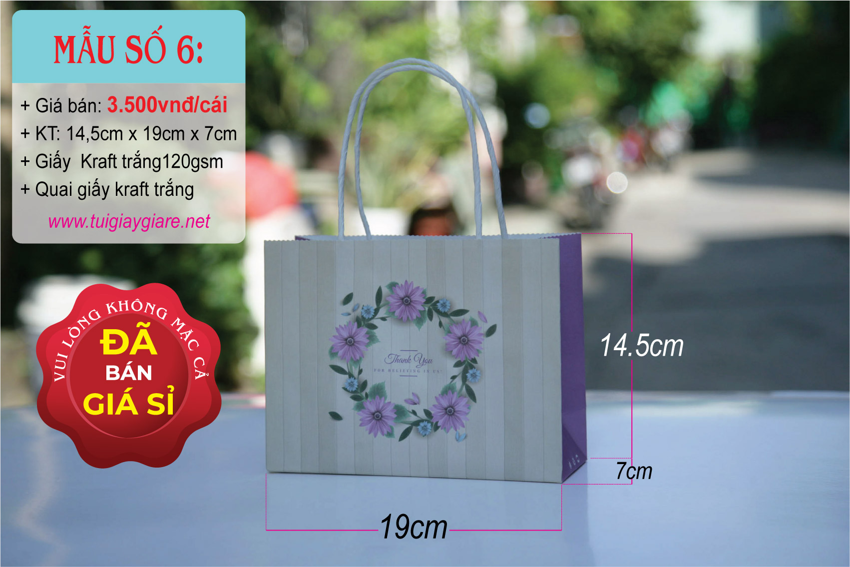 Loại quai: Quai giấy kraft trắng