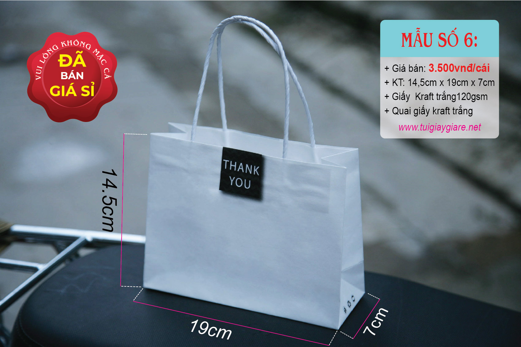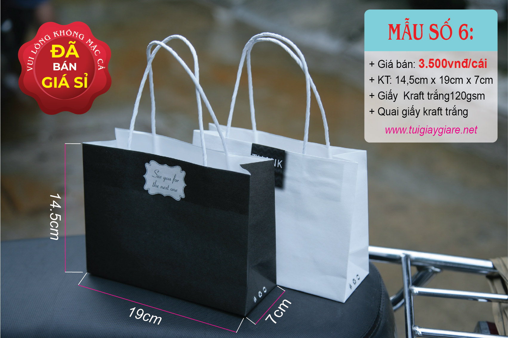 Loại quai: Quai giấy kraft trắng