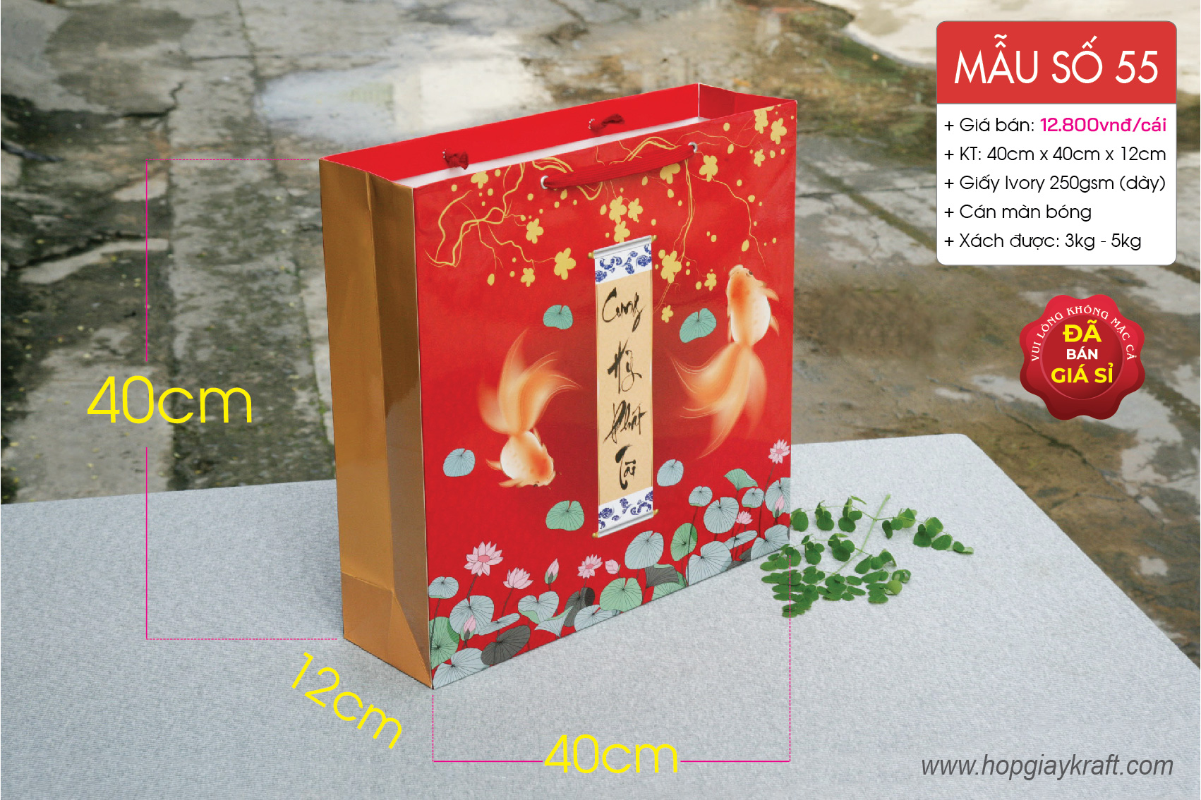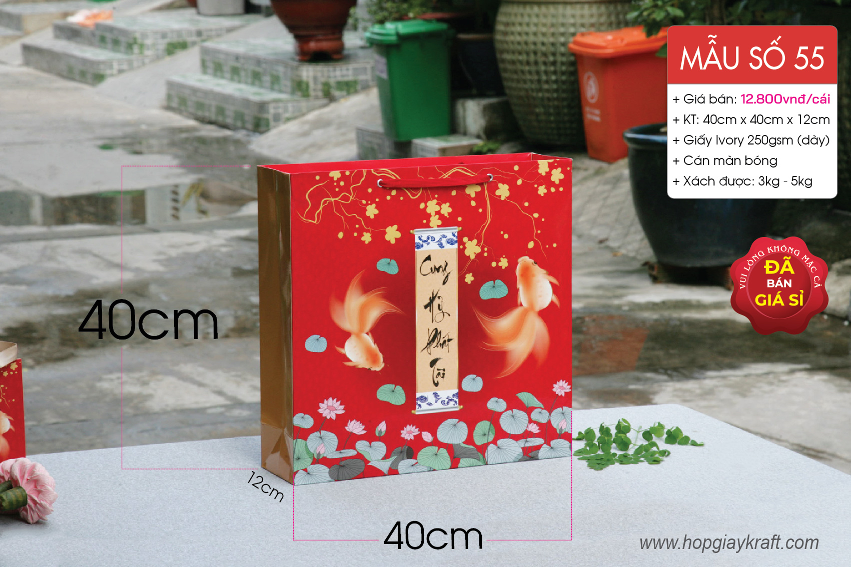 Túi giấy vuông size L thích hợp đựng hàng hóa, quà tặng dịp Tết 2021, tân gia, khai trương hoặc hàng hóa có kích thước lớn chợ
