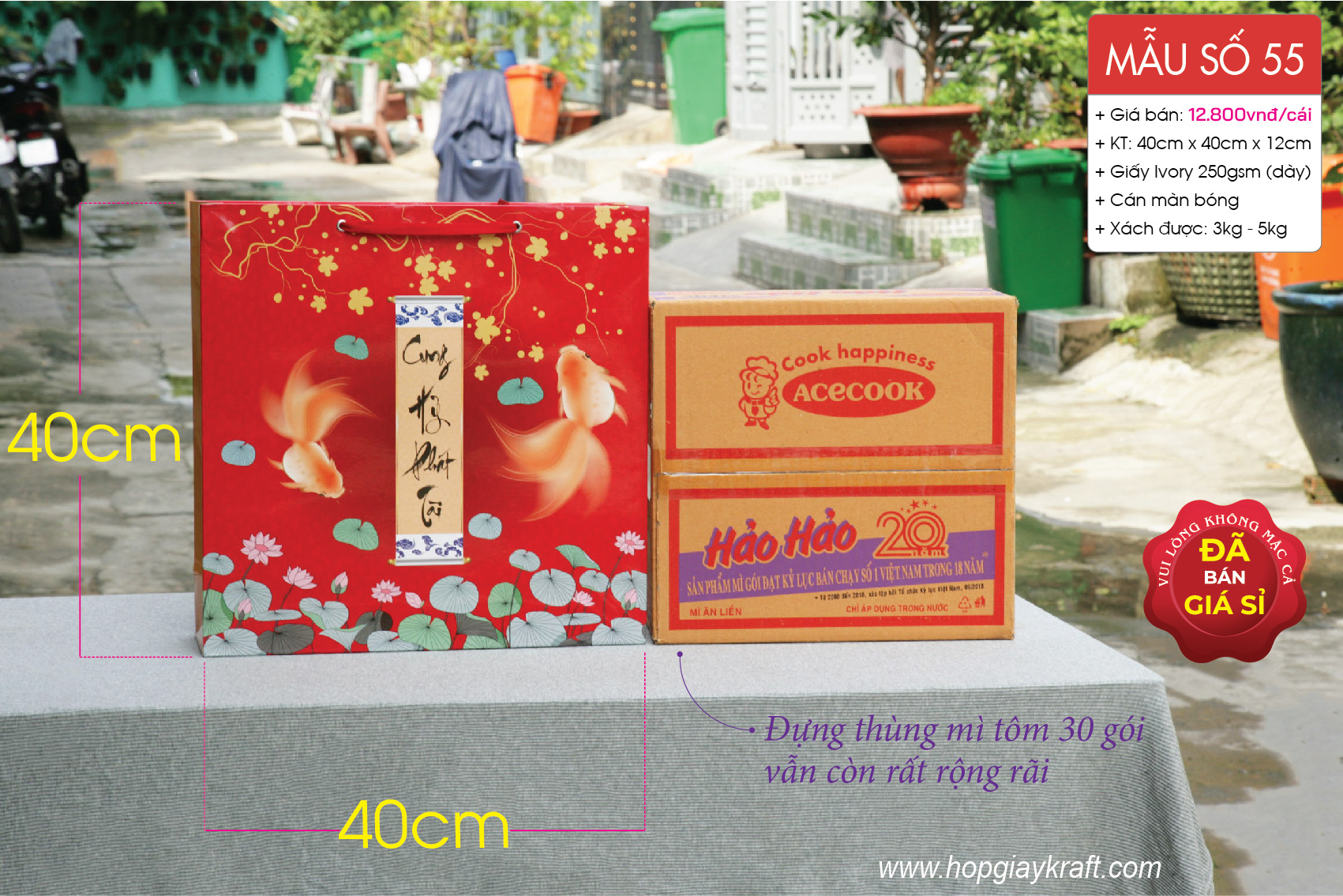 Túi giấy thích hợp đựng hàng hóa, quà tặng dịp Tết 2023, tân gia, khai trương hoặc hàng hóa có kích thước lớn